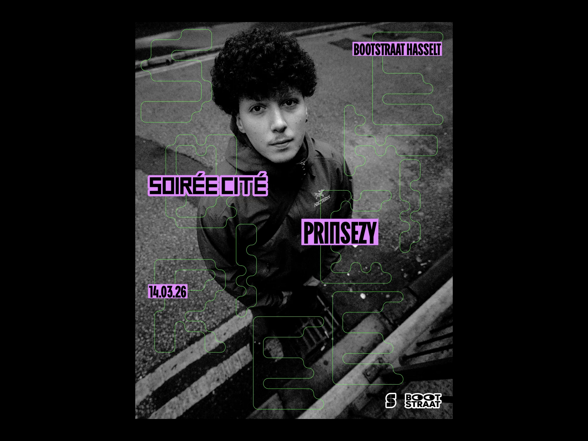 Rebranding & creative direction for Soirée Cite, a club concept from Genk, Limburg. For this event series, I made a “Soirée Cité” typeface brought to life through animation. Each event features a unique animated interpretation of this typography, paired with its own distinct color palette. Using the same typographic language, I also designed custom lettering for the ticket waves, creating a cohesive and evolving visual system.